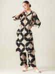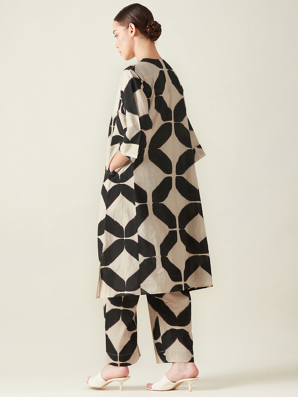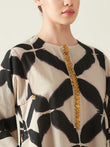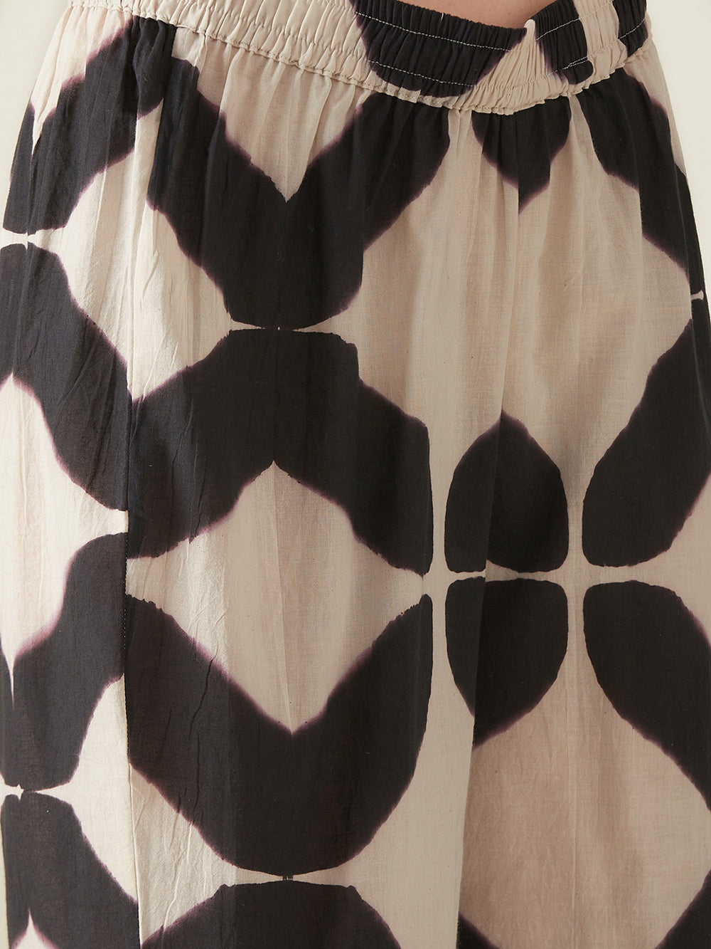 This Black Clamp Dye Embroidered Co-ord Set features a relaxed, loose-fit co-ord set that is hand-clamp dyed to perfection. The classic combination of Off-White and Black creates a timeless appeal, perfect for any occasion where you want to make a statement. The set is embellished with intricate metal handwork embroidery.