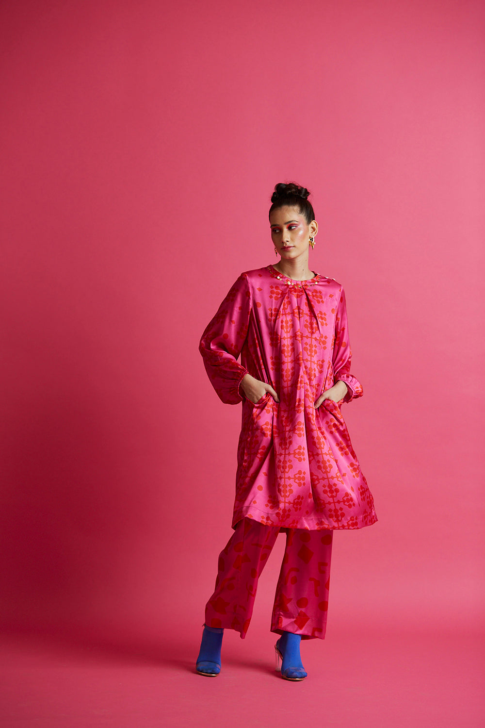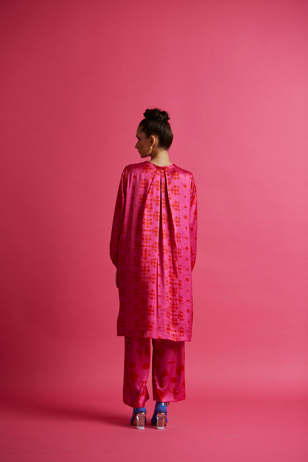 Indulge in modern glamour with our "Lona Set", a captivating fusion of digital prints and luxurious comfort. Make a bold and stylish statement with the vibrant Fuchsia hue of this set. Crafted from Modal Satin, this set offers a luxurious feel against your skin. Silky smooth and soft, it's a delight to wear from day to night.