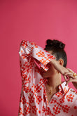Embrace a fresh, summery vibe with the timeless combination of White and Orange. Immerse yourself in the artful world of digital prints showcased on this set. Each print is a masterpiece of modern design, adding a touch of contemporary allure in modal satin fabric.